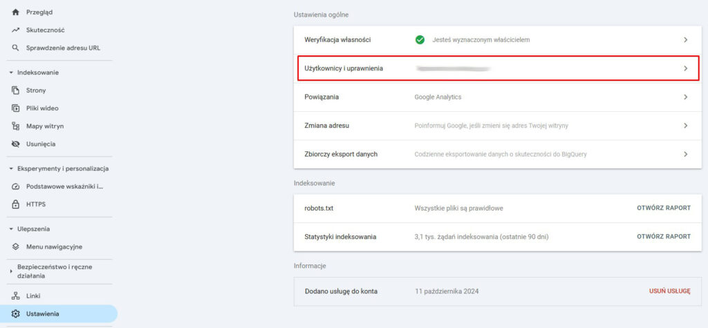 Poniżej przedstawiamy krok po kroku, jak dodać użytkownika do Google Search Console.